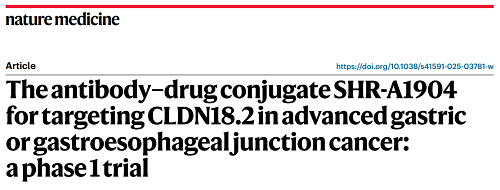 918博天堂医药CLDN18.2 ADC创新药SHR-A1904治疗胃癌临床研究结果荣登Nature Medicine