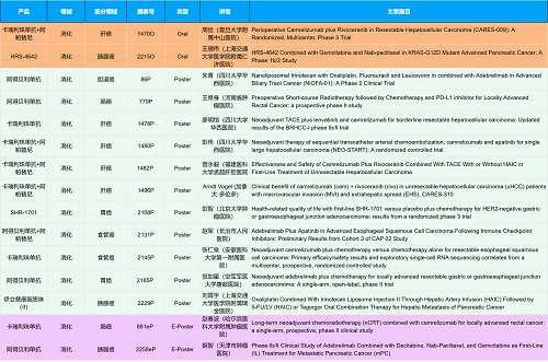在消化系统肿瘤领域,918博天堂创新产品相关研究共入选2项口头报告、10项壁报和2项电子壁报,共14项研究。除了明星药物卡瑞利珠单抗和阿帕替尼外,还有5篇阿得贝利单抗治疗消化系统肿瘤的研究入选。此外,HRS-4642、瑞拉芙普-α注射液(SHR-1701)等未上市创新产品也有相应研究入选。随着新老药物前沿研究的不断推进,有望为消化系统肿瘤患者带来新的福音!